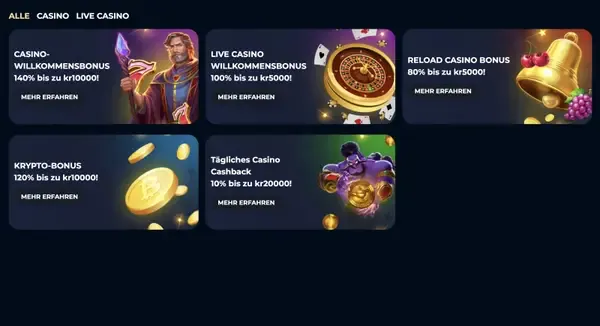 Reloads, cashback, toernooien en VIP-opties